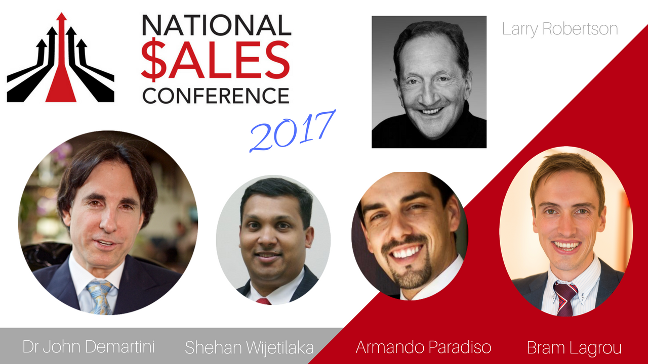 This ONLINE program includes all 10 videos of the National $ales Conference 2017 speakers including Dr John Demartini, Larry Robertson, Shehan Wijetilaka, Armando Paradiso, and Bram Lagrou.